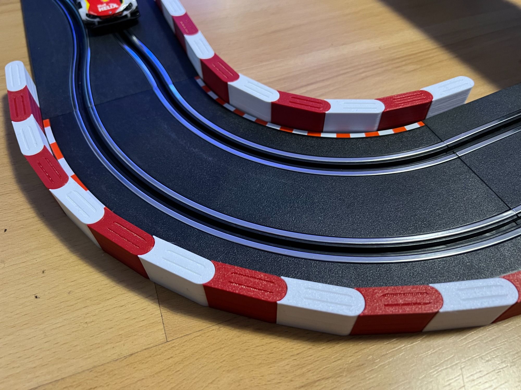 Die Segmente können, zur besseren Stabilität bei Unfällen, miteinander verklebt werden bzw. mit der Grundplatte am Boden befestigt werden.