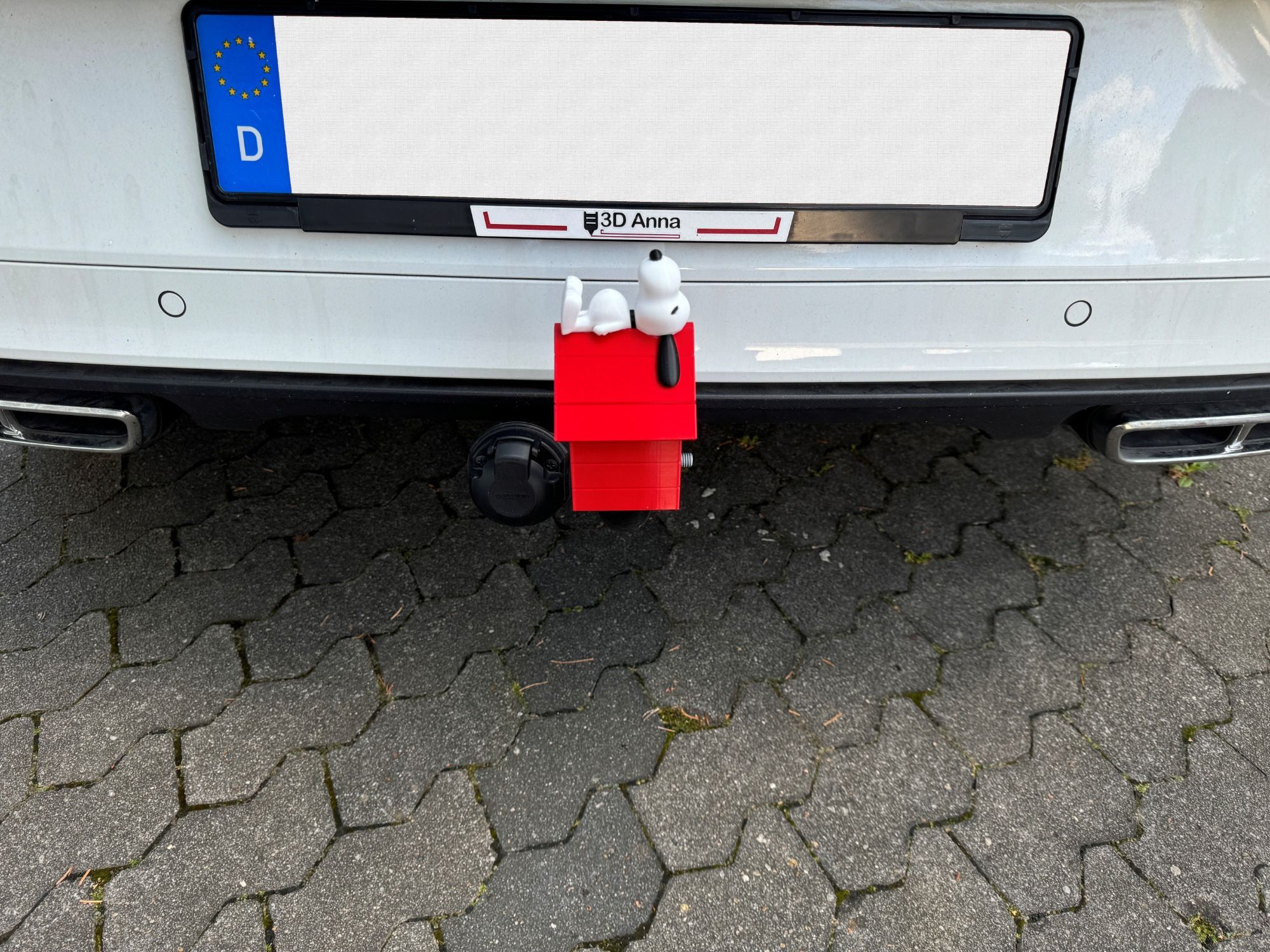 Eine Schutzkappe inspiriert von Snoppy für den Kugelkopf der Anhängerkupplung.